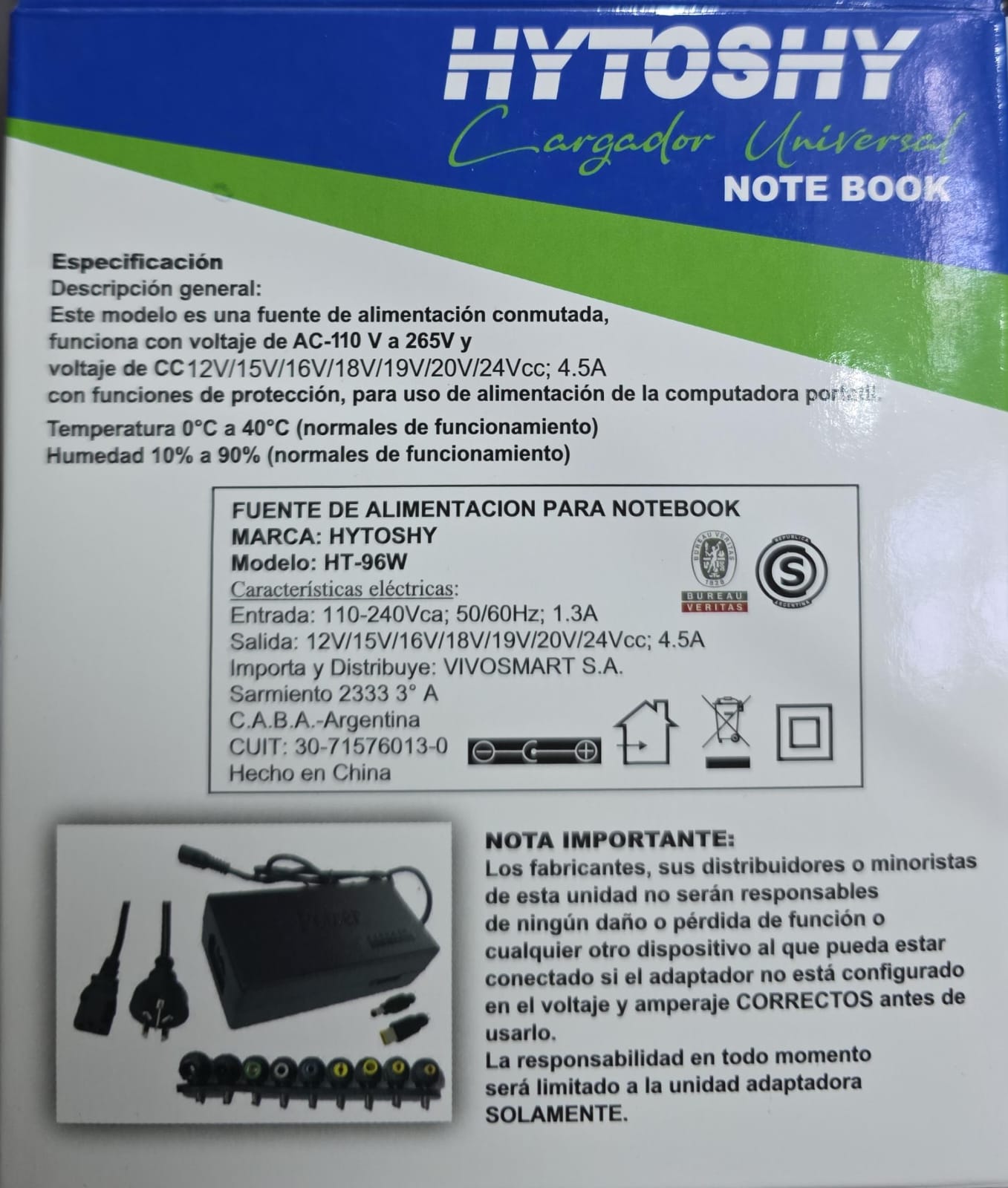 CARGADOR DE NOTEBOOCK HYTOSHY