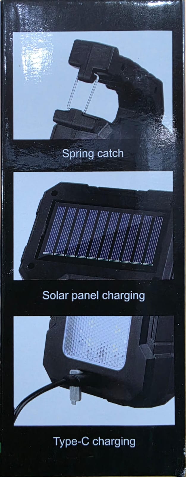 + Free ShippingEXCELENTE LINTERNA BUSCA HUELLAS IDEAL PARA CAMPING O LLEVAR EN EL AUTO , SE RECARGA SOLAR O TIPO C, ADEMAS CUENTA CON UNA POTENTE LUZ LATERAL QUE TAMBIÉN SE HACE BALIZA DE COLORES POR CUALQUIER EMERGENCIA