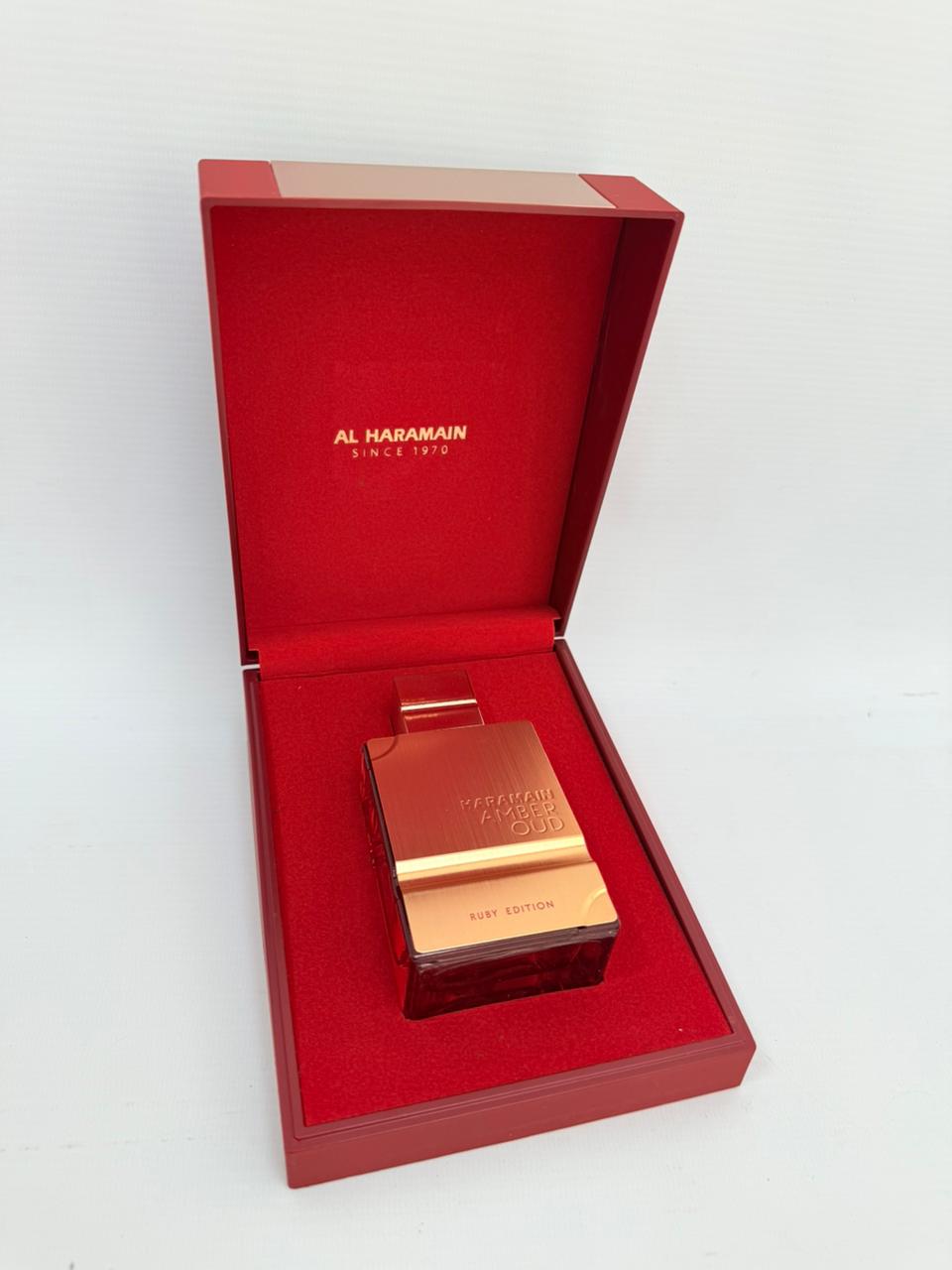 + Free ShippingAl Haramain Amber Oud Rouge es un perfume unisex de la familia ámbar floral, intensamente dulce, amaderado y especiado, conocido por ser un clon excelente (95% similar) de Baccarat Rouge 540. Destaca por su aroma a azafrán, jazmín, ámbar gris y cedro, ofreciendo una estela notable y una duración «eterna»