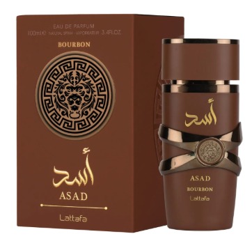 El perfume Lattafa Asad Bourbon para hombre (50ml) huele a una fragancia oriental especiada, cálida y seductora, con notas principales de vainilla Bourbon, cacao, ámbar y vetiver en la base, combinadas con lavanda, ciruela y pimienta rosa en la salida, y nuez moscada y davana en el corazón, creando un aroma adictivo, dulce y especiado ideal para la noche o climas frescos.