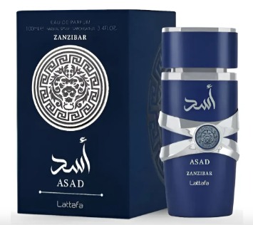 Lattafa Asad Zanzibar (100ml, botella azul) es una fragancia masculina tropical y especiada lanzada en 2024, destacada por una combinación inusual de agua de coco, sal e iris. Ofrece una salida fresca de lavanda y pimienta, un corazón cremoso/salado y un fondo cálido de vainilla e incienso, siendo versátil para todo el año.